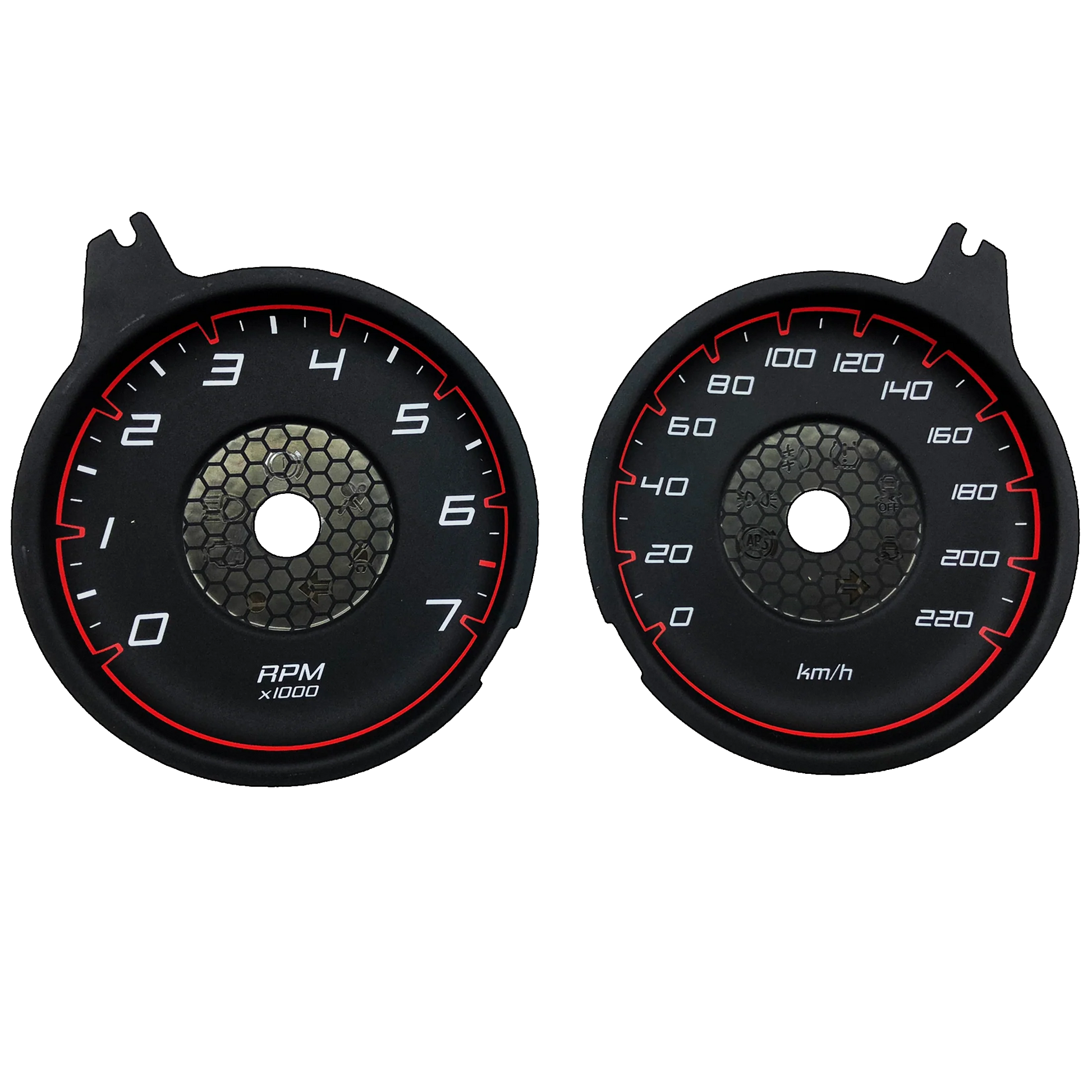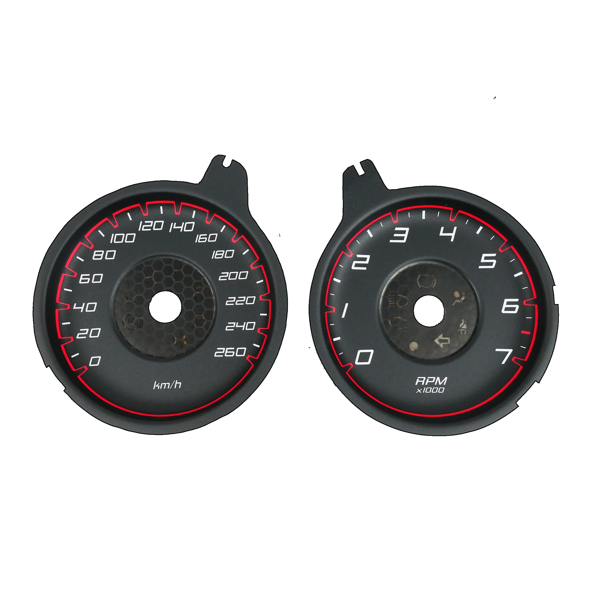 High-quality speedometer dials are crafted from durable materials and feature a matte surface that reduces glare for excellent visibility in all lighting conditions. Designed to match OEM specifications, warning indicators are positioned in the same locations for a seamless fit, while precision laser cutting ensures accuracy and perfection.